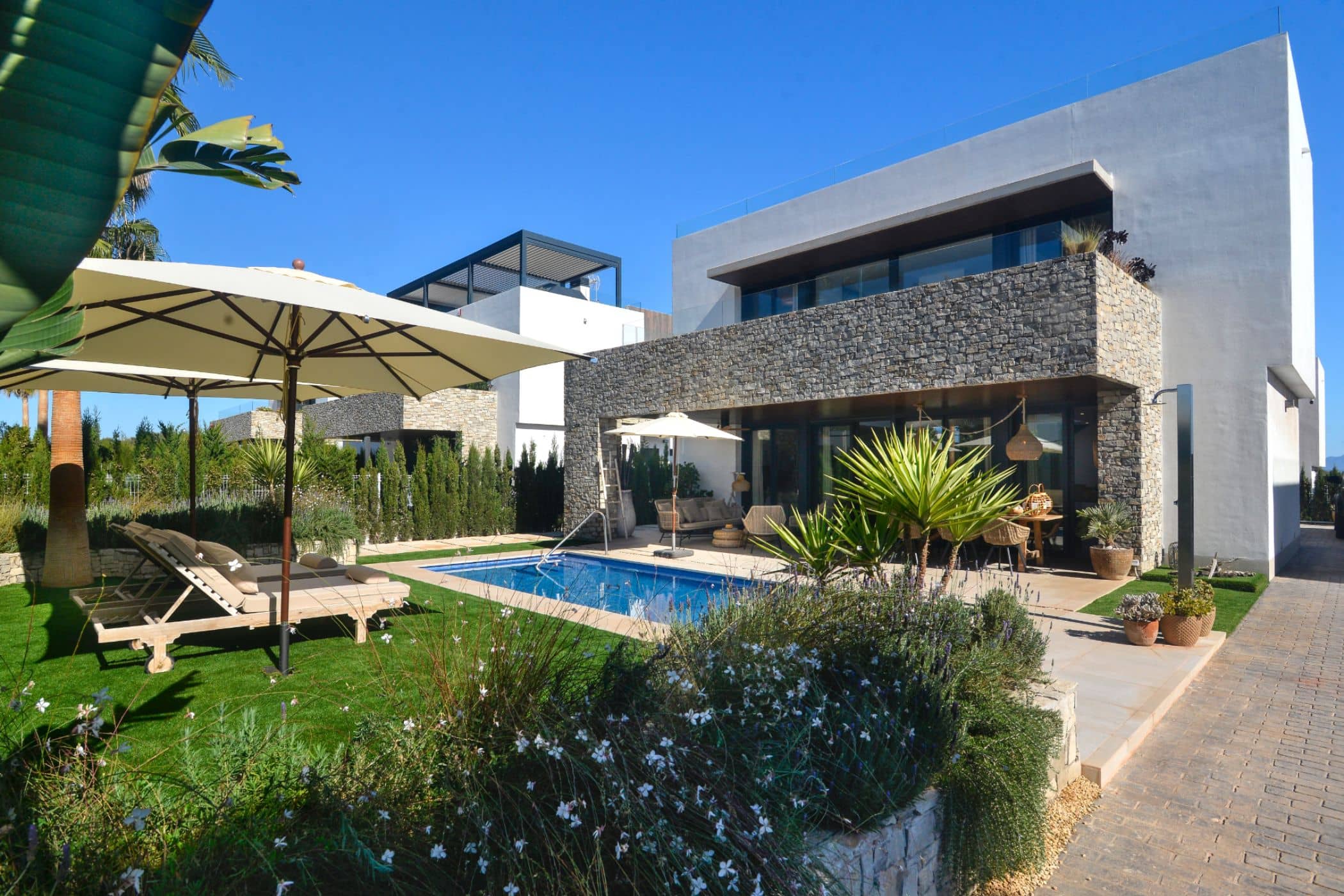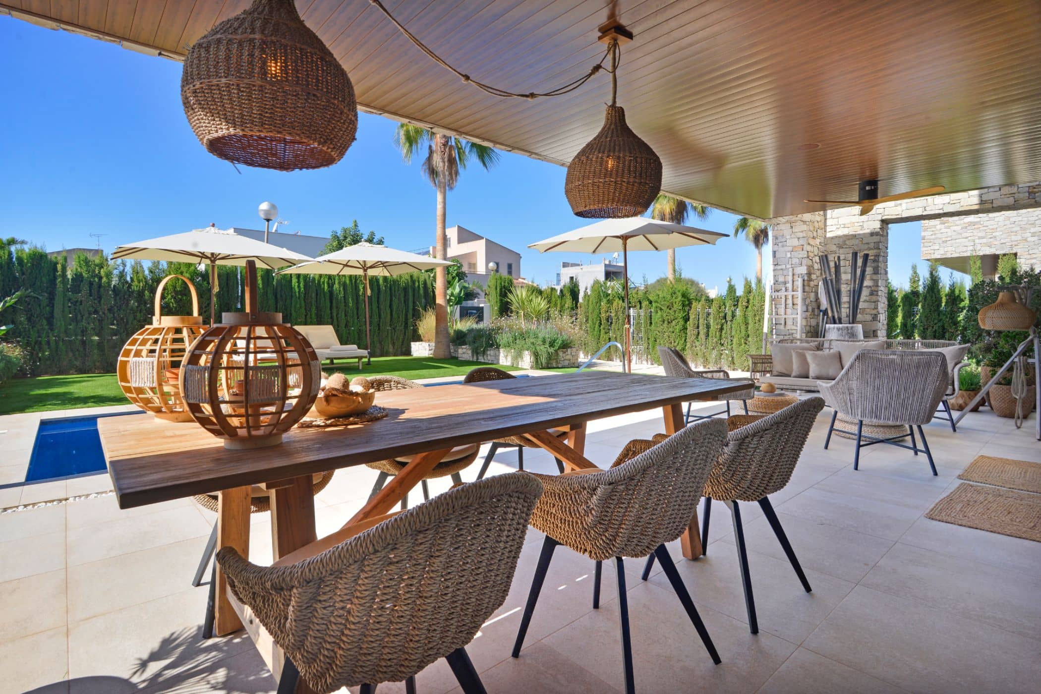 As recommended by you, Mrs Renner, we used their bike delivery service. This extended our radius of action to Santanyi and beyond! The rest of the days we spent at the pool and beach. It's less than an 8-minute walk to the beach, the kids even walk barefoot. Although it was hard enough to get them away from the pool 🙂 The SUP boards belonging to the house helped. The kids were in the water almost non-stop for the rest of the day - a nice experience. There was one highlight we didn't know about yet. The roof terrace of the house was not used by the previous owner. We advocated among the owners to make the roof terrace as beautiful as the rest of the house, and could now fully enjoy the space with a view of the sea. We are already looking forward to our next holiday. Of course, we have already reserved the times in the app :-) In any case, we thank you and your team for the support in all matters.