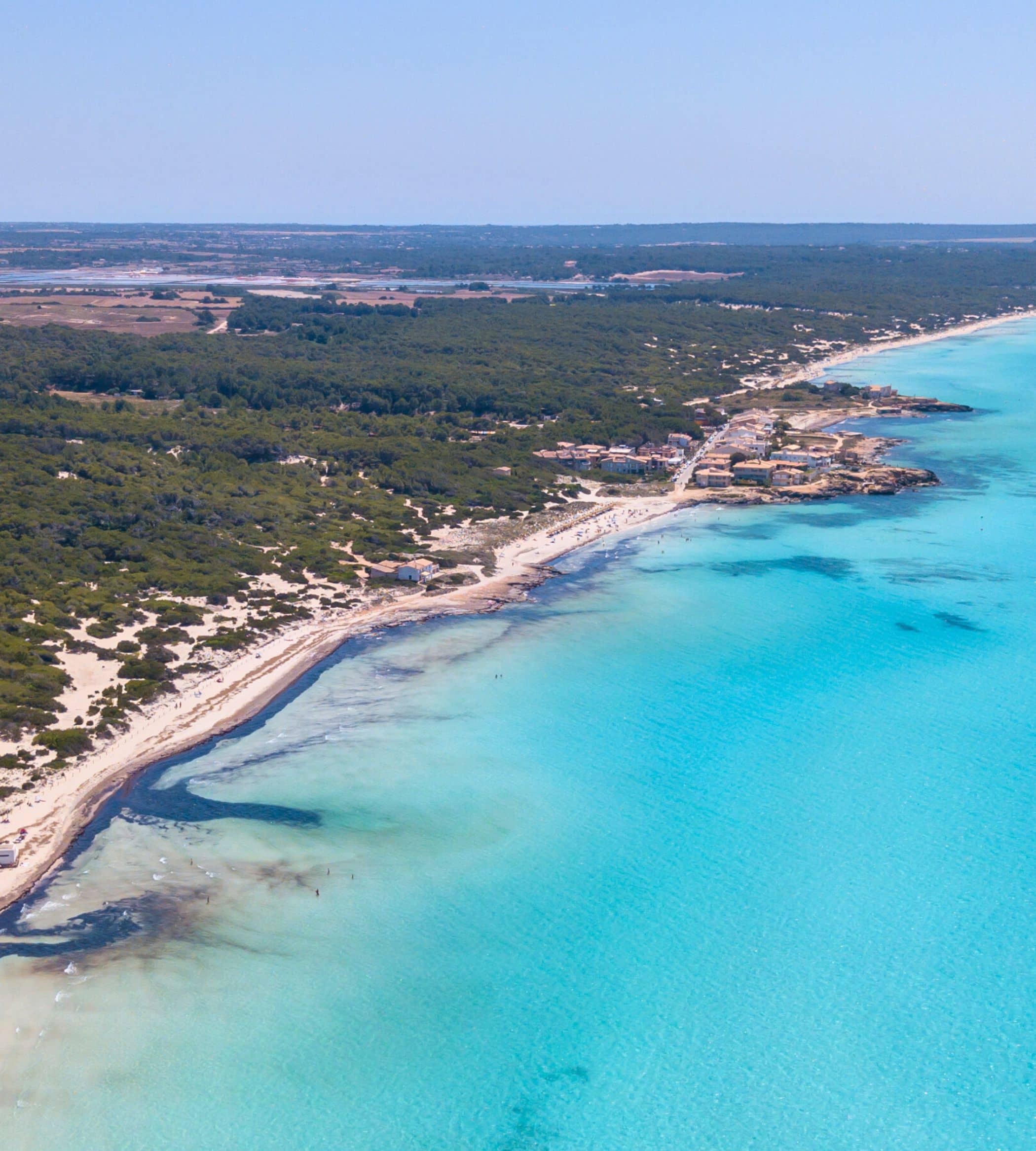 Near Sa Ràpita, the famous natural beach Es Trenc awaits – known for its fine white sand and turquoise waters. With its gently sloping shore and absence of hotel developments, it's the perfect spot for relaxed swimming in a setting that feels almost Caribbean.