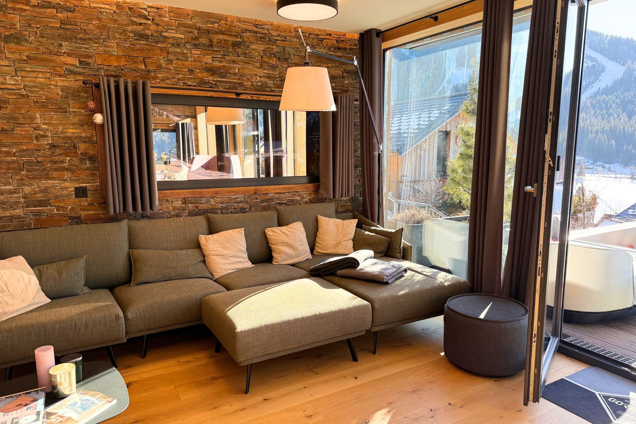 Dieses moderne Chalet in erhöhter, ruhiger Lage von Hohentauern in der Obersteiermark begeistert mit einem weiten Panoramablick auf die umliegende Bergwelt. Auf der sonnigen Südwest-Terrasse entfaltet sich echtes Urlaubsgefühl: Ein beheizter Pool, Hot Tub, Sauna und Grillbereich vereinen sich zu einer exklusiven Wohlfühloase für entspannte Sonnenstunden, gesellige Runden und stimmungsvolle Abende unter freiem Himmel. Großzügige Fensterfronten durchfluten die Innenräume mit viel Licht und holen die beeindruckende Naturkulisse ins Haus - stets begleitet von einem schönen Bergblick, ob beim Abendessen, Saunieren oder beim Entspannen im Hot Tub. Das familienfreundliche Skigebiet Hohentauern mit rund 11 Pistenkilometern ist fußläufig in wenigen Minuten erreichbar und eignet sich für klassische Skifahrer als auch für Langläufer und Winterwanderer. Der nahegelegene Naturerlebnispark Hohentauern bietet weitere Outdoor-Aktivitäten für die ganze Familie. Ein weiteres Highlight dieses Chalets ist der besonders begehrte Freizeitwohnsitz.