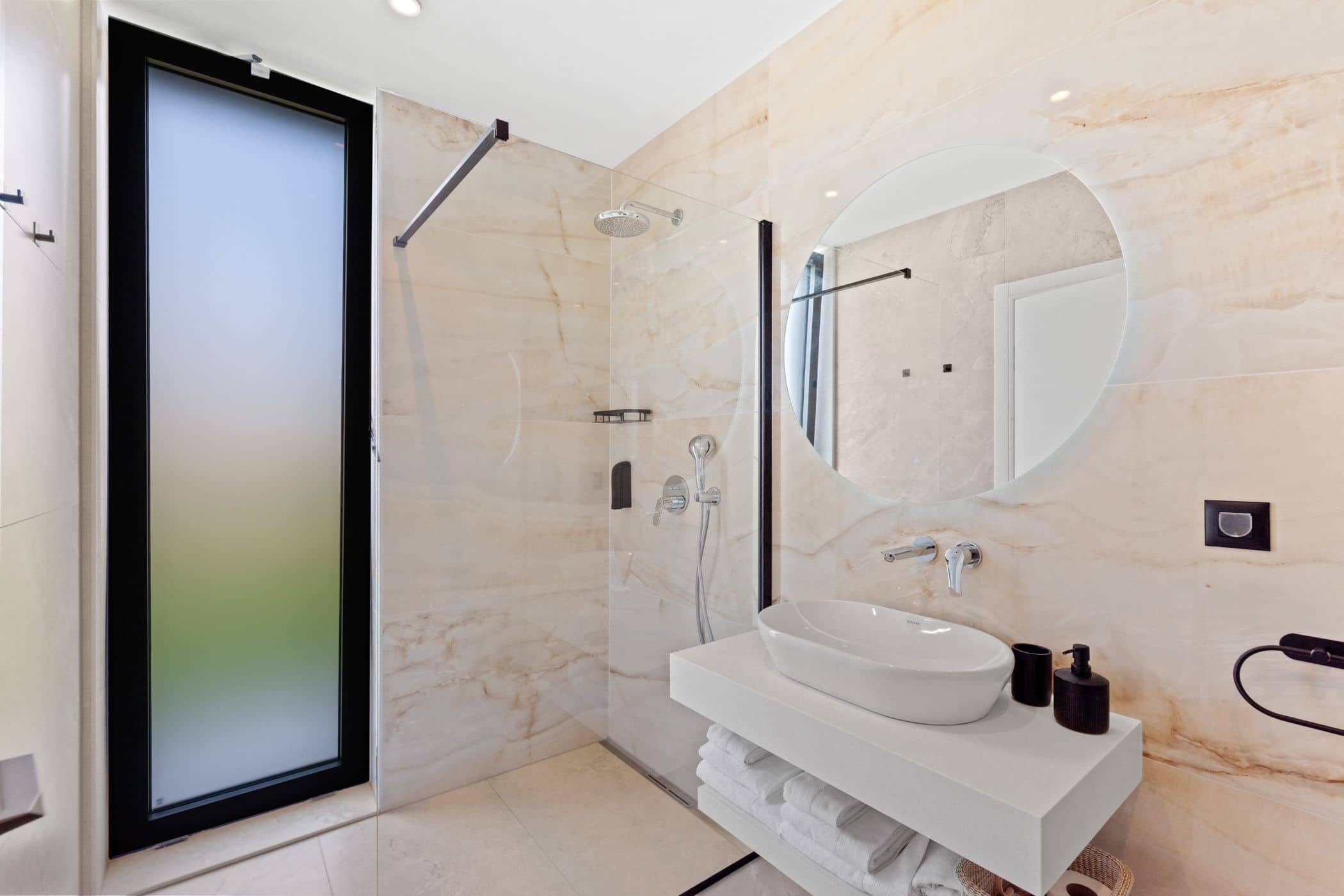 Diese hochwertige Neubau-Villa in exklusiver Lage auf der beliebten Halbinsel Istrien bietet alle wünschenswerten Annehmlichkeiten für einen rundum erholsamen Aufenthalt. Hier erleben Sie Inside-out Living auf höchstem Niveau. Eine großzügige Terrasse ist vom offenen Wohn- und Essbereich aus zugänglich. Hier erwarten Sie eine Lounge-Area mit Feuerstelle, Sonnenliegen, ein Essbereich für Al-Fresco-Dining und ein Pool zur Erfrischung. Zusätzlich verfügt die Villa über eine Dachterrasse mit Außenbar und Whirlpool, begleitet von einem Fernmeerblick. Sonne tanken, einen Drink genießen und im Whirlpool entspannen – hier alles ist möglich. Auch die Schlafzimmer im Obergeschoss bieten direkten Zugang zur Terrasse mit Meerblick. Ein weiteres Highlight ist der Fitness- und Wellnessbereich für aktive und erholsame Momente, sowie ein Heimkino für gemeinsame Abende. Den Strand erreichen Sie innerhalb weniger Minuten mit dem Auto, und auch der Ort Poreč mit seinem Hafen ist nur wenige Autominuten entfernt. Genießen Sie bereits diesen Sommer in dieser Traumvilla mit umfassendem Urlaubskomfort.