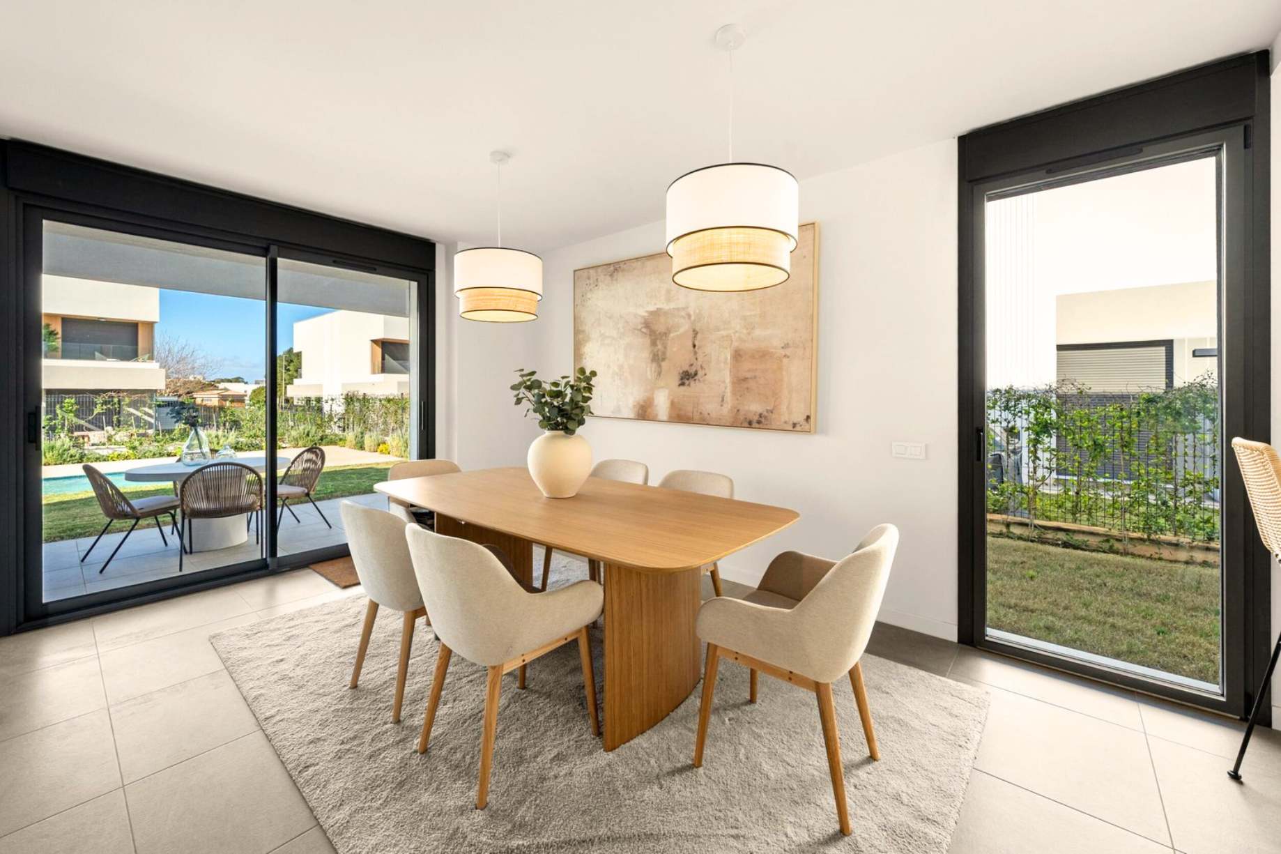 In exklusiver Lage von Puig de Ros, nur 20 Minuten von Palma entfernt, liegt diese moderne Neubau-Haushälfte, die eine erholsame Oase bietet. Die private Dachterrasse mit einem kleinen Blick auf das Meer ist ein echtes Highlight – der perfekte Ort für entspannte Stunden unter freiem Himmel. Ergänzt wird das Angebot durch eine sonnige West-Terrasse und einen Balkon, die zu entspannten Nachmittagen und stimmungsvollen Sonnenuntergängen einladen. Der private Garten mit beheiztem Pool bildet eine geschützte Rückzugsmöglichkeit, während ein privater Fitness-/Wellnessbereich mit Sauna für Erholung und aktive Auszeiten sorgt. Der beliebte Mhares Sea Club mit direkter Badestelle ist in wenigen Minuten mit dem E-Bike erreichbar. Sandstrand und Hafen mit Bootsverleih liegen ebenfalls nur rund zehn Autominuten entfernt. Golfplatz und Tennisclub sind fußläufig oder in wenigen Minuten mit dem E-Bike erreichbar - ideal für einen aktiven Urlaub. Familien profitieren zudem vom nahegelegenen Aqualand El Arenal, das für abwechslungsreichen Freizeitspaß sorgt. Dank der Nähe zum Flughafen und der schnellen Anbindung an Palma verbindet diese Lage auf ideale Weise Ruhe, Lebensqualität und urbane Vielfalt – perfekt für alle, die entspannte Auszeiten genießen und dennoch nah am pulsierenden Inselleben bleiben möchten.