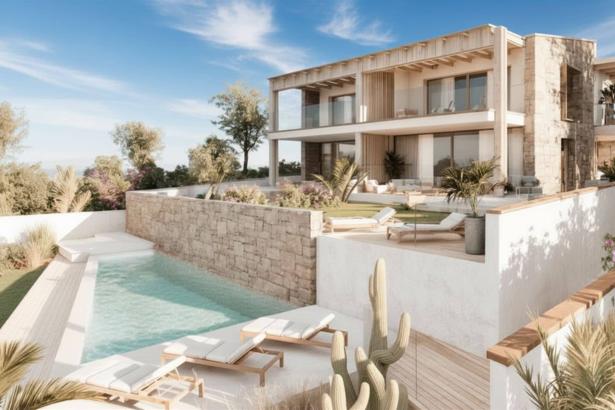 This modern, new-build garden apartment is located on the beautiful north-east coast of Sardinia, in a peaceful and green area of Palau – just a short walk from the beautiful Spiaggia dell’Isolotto beach and the marina. The private garden with a covered terrace offers sweeping views of the sea and the surrounding coastal landscape, providing a lovely place for relaxing and al fresco dining. A shared pool with sun loungers is available for refreshment. The lively centre of Palau is within easy walking distance. Restaurants, small boutiques, the picturesque promenade and the marina invite you to take a walk. Daily boat trips depart from here to the impressive La Maddalena Archipelago, one of the Mediterranean’s most beautiful natural paradises. Active holidaymakers will also find excellent conditions here: whether kayaking, stand-up paddleboarding, diving or sailing – the possibilities are endless. Further stunning bays and beaches are just a few minutes’ drive away, and Olbia Airport is around 45 minutes away.
