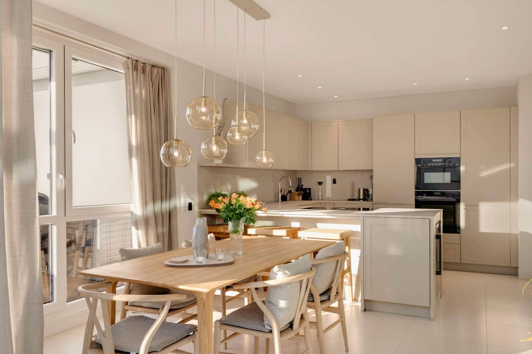 Just a few steps from the white sandy beach, in one of the most desired locations on Timmendorfer Strand, this modern penthouse awaits you with panoramic views of the countryside and the Baltic Sea. The spacious, wraparound roof terrace and the light-filled conservatory create the perfect setting for relaxed inside-out living – perfect for breakfast together under the open sky or cosy BBQ evenings. Thanks to the excellent orientation, the evening sun shines through the wraparound glass walls into the living and dining area, flooding the rooms with warm, golden light at sunset. A private sauna offers additional relaxation after an active day at the sea. The fine sandy beach is almost right on your doorstep. The pier, Niendorf harbour and numerous restaurants, cafés and boutiques are also just a few minutes away. Whether it's a walk along the coast, an espresso with a sea view or a trip to the green countryside – thanks to the excellent location, all this is easy to do on foot or by e-bike. Sports enthusiasts will also find a spacious 36-hole golf course just a few minutes' drive away, surrounded by wide open nature and fresh Baltic Sea air.
