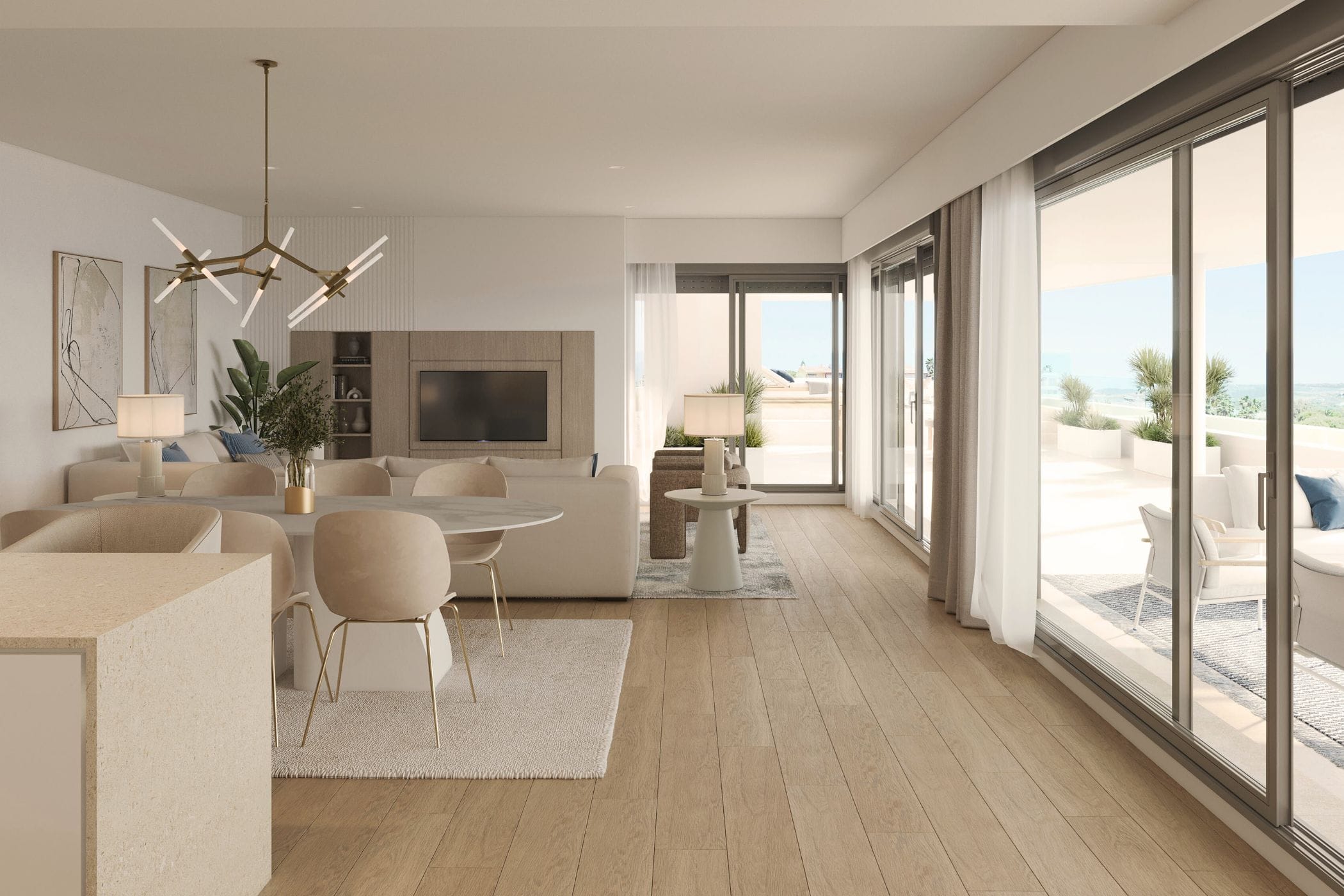 This new-build terrace apartment is located in the exclusive Zenity Índigo Resort in Estepona on the Costa del Sol. The covered south-east facing terrace offers unobstructable panoramic views of the sea and invites you to start the day completely relaxed – accompanied by the first light of the morning sun and the gentle sound of the sea. The exclusive amenities of the Zenity Índigo Resort fulfill everything you can wish for: an outdoor pool with a children's pool and a modern gym offer comfort and relaxation in a unique setting. The resort is only a 10-minute walk from the beach, giving you quick access to the Mediterranean lifestyle. The charming old town of Estepona, the harbour and the beach promenade are only 15 minutes away by e-bike. There are also several 18-hole golf courses in the area, offering spectacular mountain and sea views. The Sierra Bermeja hiking area offers wonderful tours with views as far as Gibraltar – the perfect way to discover the natural beauty of the region.