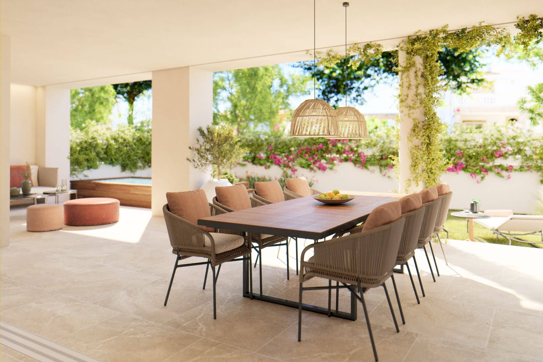 Privé tuin met verwarmde plungepool